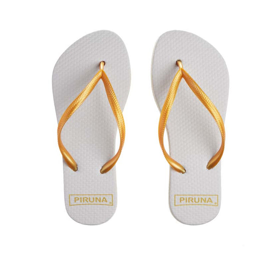 Piruna Flip Flops Gold and White Elegant Summer Sandals for Men and Women